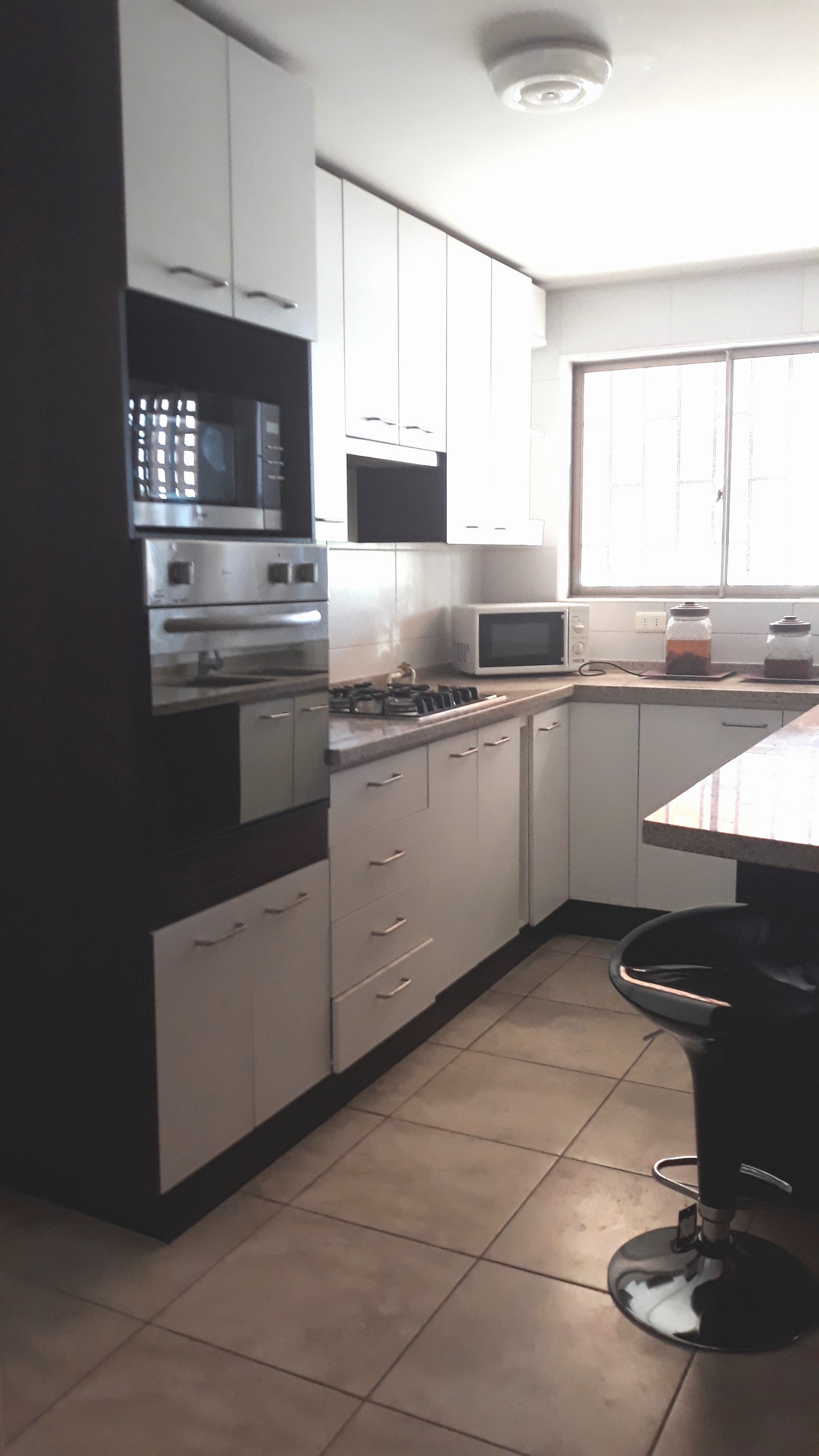 * Cocina equipada con cocina, horno, campana y muebles.