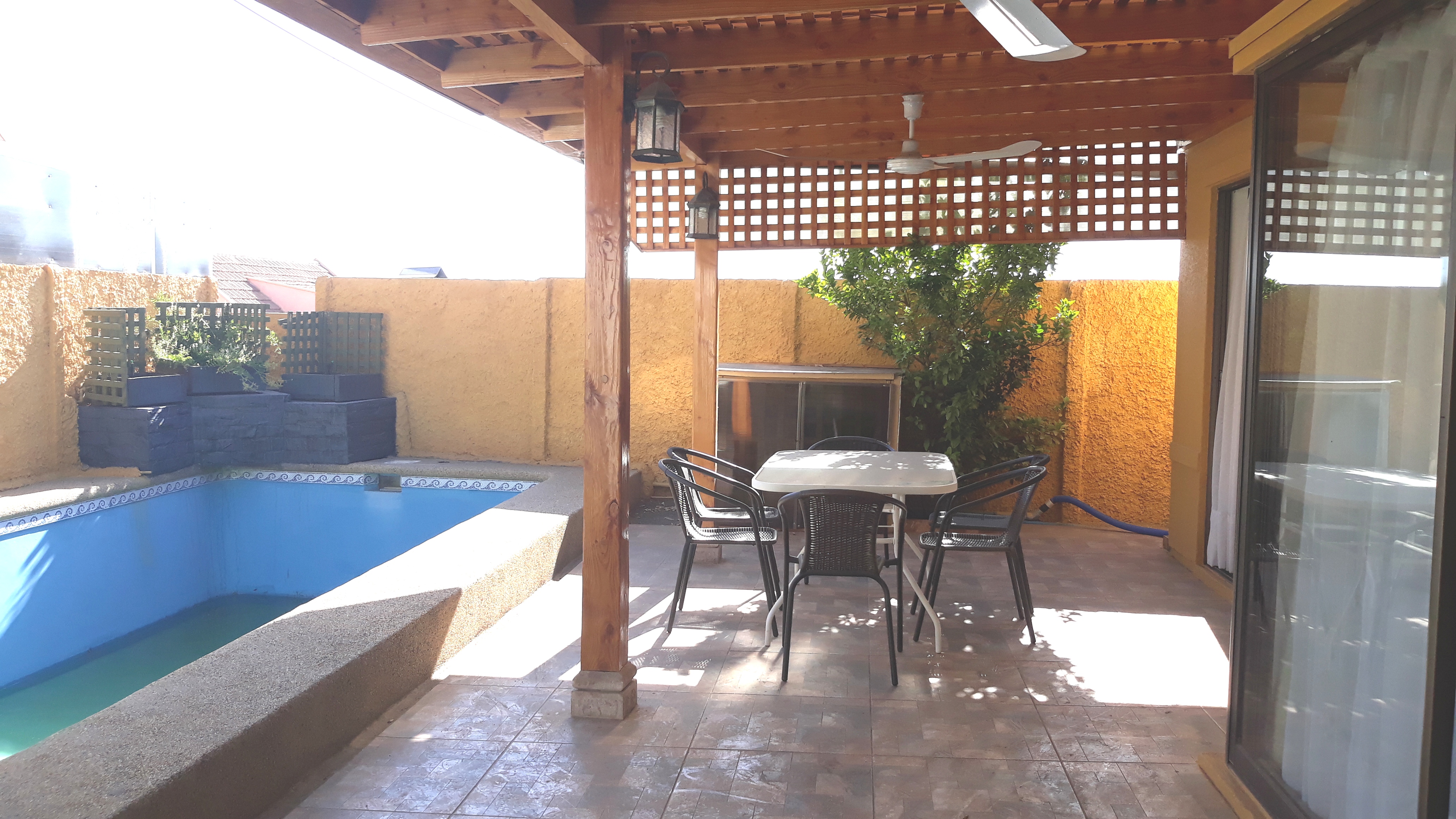 * Patio con quincho y piscina.